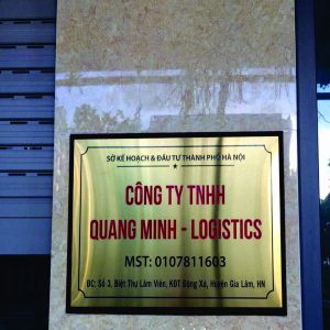 Biển hiệu công ty thường có khích thước nhỏ được làm từ nhiều chất liệu khác nhau như: Mica, alu, inox, đồng… Nội dung trên biển gồm có: Tên công ty, logo,địa chỉ, điện thoại…và một số thông tin khác do khách hàng yêu cầu.
